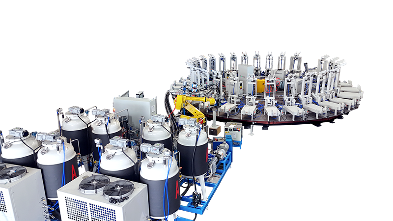 客戶若有自動(dòng)化生產(chǎn)需求,我們可以為客戶提供相應(yīng)的解決方案,如全(半)自動(dòng)圓盤生產(chǎn)線或環(huán)形生產(chǎn)線,搭配聚氨酯發(fā)泡機(jī)、機(jī)械手、氣動(dòng)模架、模溫機(jī)形、電控系統(tǒng)等設(shè)備形成一條完備的自動(dòng)化智能生產(chǎn)線。全自動(dòng)感應(yīng)實(shí)現(xiàn)開合模、噴灑脫模劑、澆注等動(dòng)作,大大節(jié)省人工勞力。PLC集成化控制,輕松操作實(shí)現(xiàn)科技自動(dòng)化。
