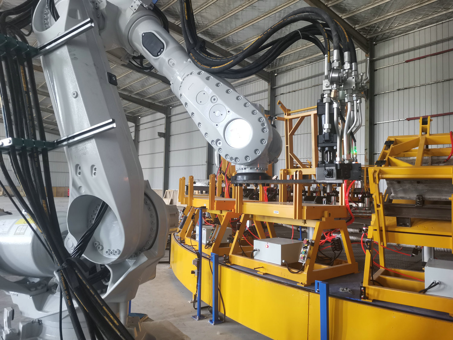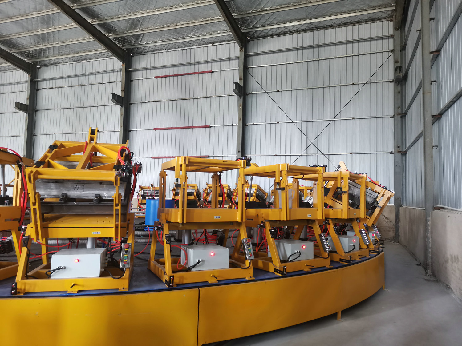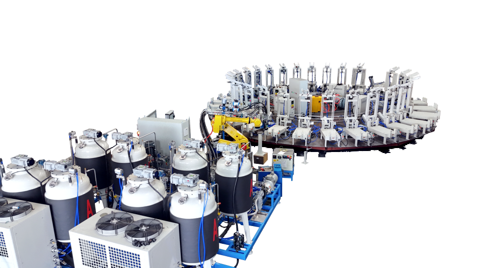 圓盤生產(chǎn)線由高壓發(fā)泡機、機械手、模架、模溫機、圓形轉盤、掃碼器、自動控制系統(tǒng)等各裝置組成 適用于生產(chǎn)汽車座椅、頭枕、內(nèi)飾件、扶手、摩托車坐墊、家居家具用品等各類需要模塑的聚氨酯發(fā)泡產(chǎn)品 可實現(xiàn)高效、精確生產(chǎn),高產(chǎn)能低勞工,模塊化、高端配置實現(xiàn)穩(wěn)定運行、維護簡便。